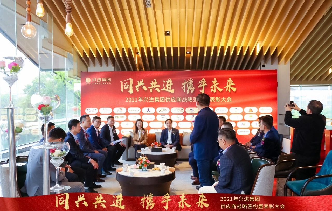 本次大會圍繞"同興共進,攜手未來"主題展開,興進集團董事長兼總裁羅欣先生、副總裁兼事業(yè)一部總裁王敏女士 、副總裁韋萍女士、副總裁李華先生、副總裁羅捷女士、事業(yè)二部總裁張昌平先生、事業(yè)三部總裁黃華杰先生及相關部門負責人、以及興進集團戰(zhàn)略合作供應商代表、2020年度合作中履約評估優(yōu)良的供應商代表、各大媒體代表相聚一堂,共話未來!