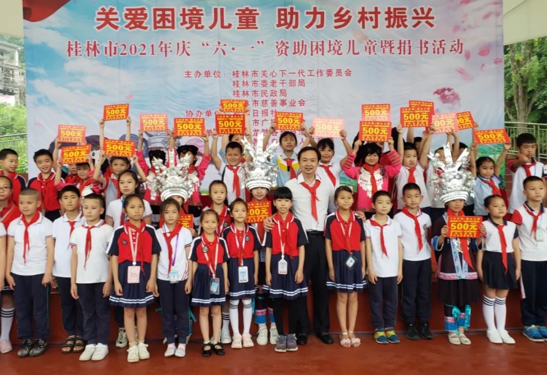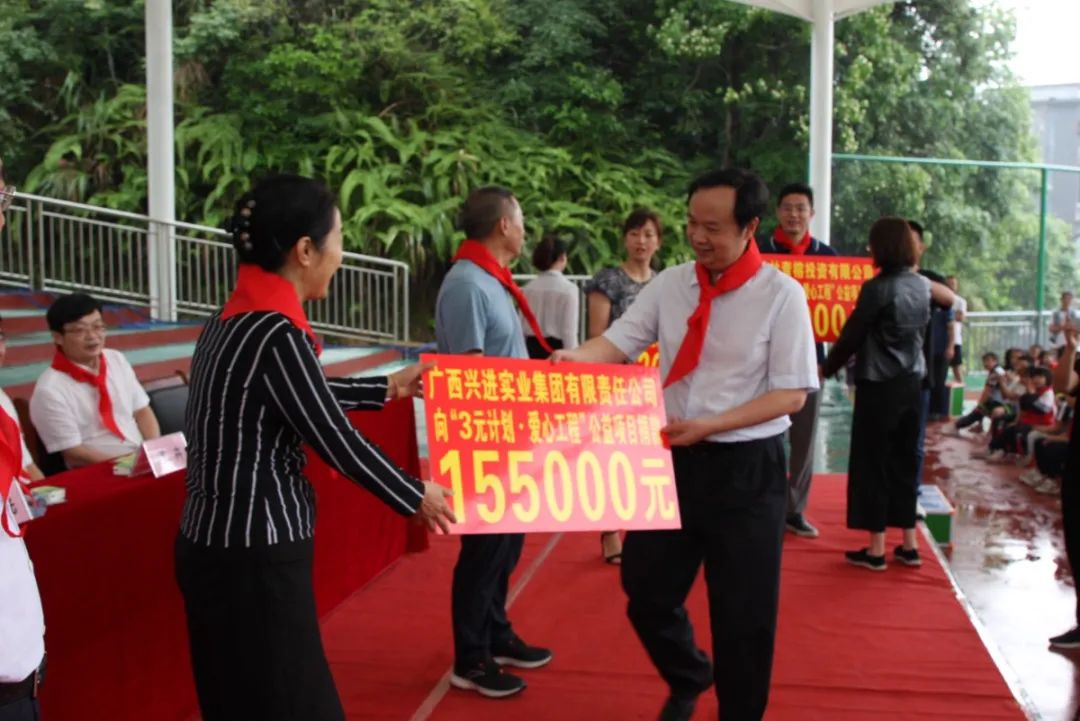 6月,"三元計(jì)劃·愛心工程"繼續(xù)出發(fā),于兒童節(jié)當(dāng)日,在龍勝縣龍勝鎮(zhèn)第二小學(xué)隆重舉辦了"關(guān)愛困境兒童,助力鄉(xiāng)村振興" 2021年慶"六·一"資助困境兒童暨捐書活動(dòng),此次活動(dòng)由市關(guān)工委、市民政局等單位共同主辦,興進(jìn)集團(tuán)作為愛心工程的愛心企業(yè)代表出席了此次活動(dòng),集團(tuán)董事長兼總裁羅欣先生代表興進(jìn)向"三元計(jì)劃·愛心工程"公益項(xiàng)目捐款共計(jì)155000元。