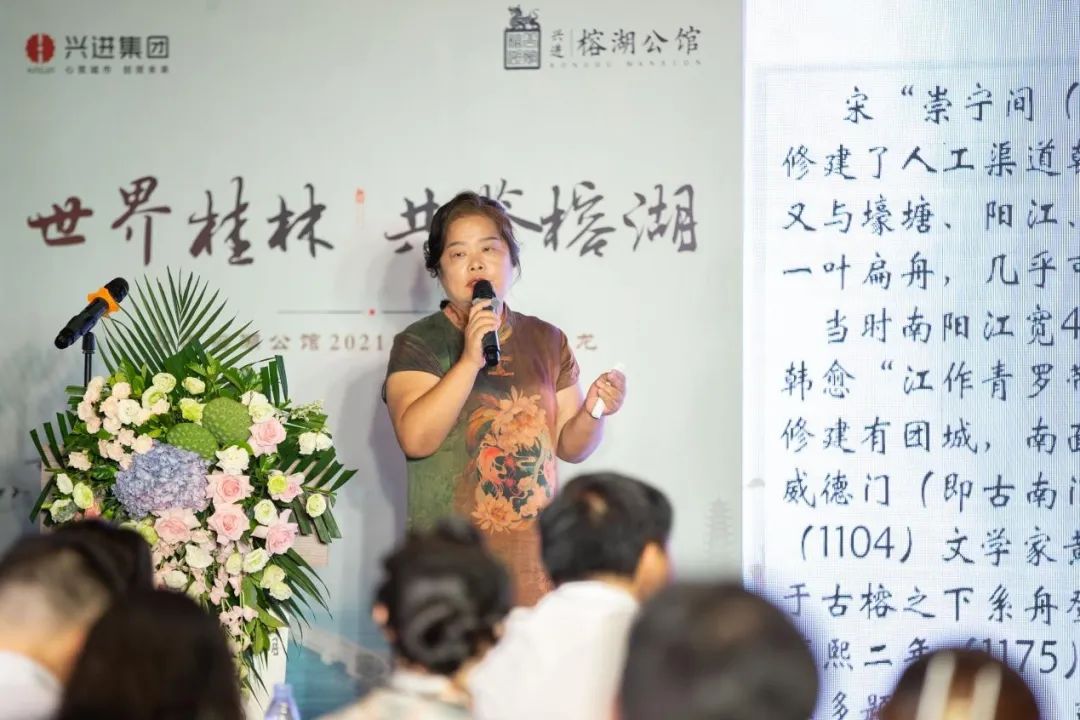 活動(dòng)還特別邀請(qǐng)到桂林抗戰(zhàn)文化研究會(huì)會(huì)長(zhǎng)、桂林歷史文化研究院專(zhuān)家委員會(huì)委員凌世君女士?;顒?dòng)現(xiàn)場(chǎng),凌老師向來(lái)賓們娓娓道來(lái)《榕湖的前世今生》,將榕湖的歷史脈絡(luò)、人文景致生動(dòng)描述,并且將其長(zhǎng)期對(duì)于榕湖的研究及學(xué)術(shù)文章結(jié)合進(jìn)行了分享,讓所有來(lái)賓身臨其境體驗(yàn)了一次"千年榕湖"穿越之旅。