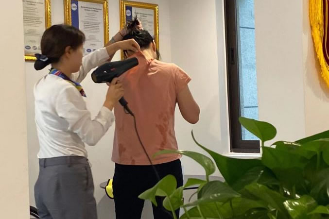 每到雨季,桂林的雨連續(xù)不斷,出門一趟,即便撐著傘,也有被淋濕的風(fēng)險(xiǎn)。針對這樣的情況,漓江壹號(hào)物業(yè)金鑰匙團(tuán)隊(duì)早已做好萬全準(zhǔn)備,在物業(yè)服務(wù)中心放置電吹風(fēng)、毛巾等干燥用具,并為其吹干被打濕的衣物,及時(shí)解決業(yè)主遇到的難題。