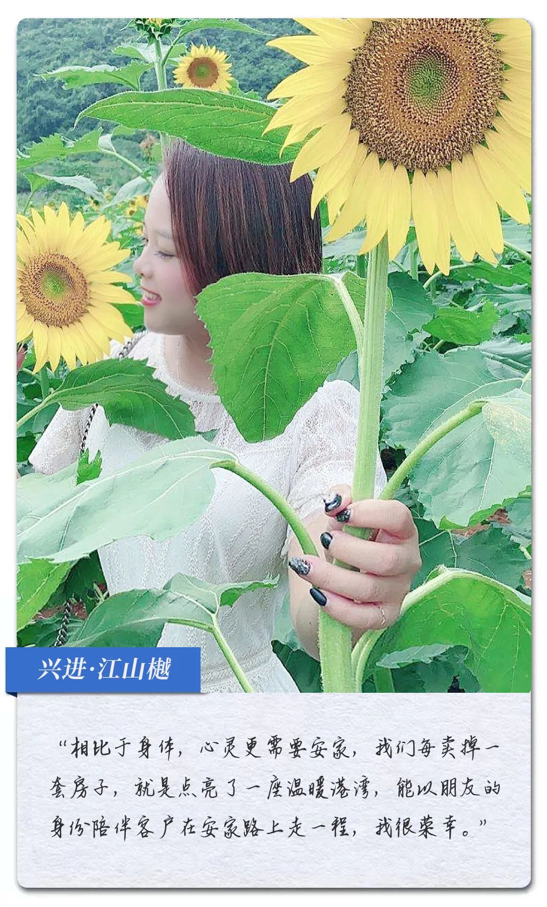 很多像李微微、張藍之、于澤坤一樣的安家顧問,在他們看來,賣的是房子,肩負的卻是家,他們也正用自己的方式,努力成為客戶的理想生活規(guī)劃師,為還在尋覓幸福的人找到家。