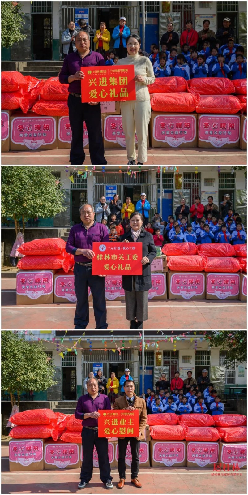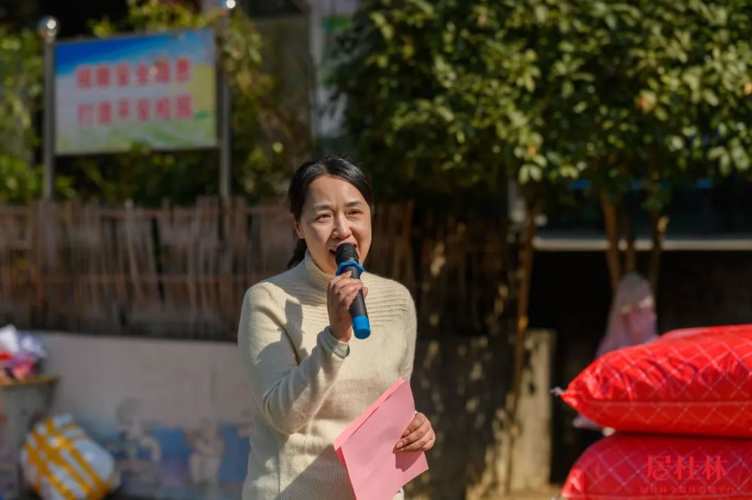 中午12點(diǎn),愛(ài)心車(chē)隊(duì)抵達(dá)白嶺小學(xué),這位"圣誕老人"終于揭開(kāi)神秘面紗,他們就是由興進(jìn)集團(tuán)和眾多愛(ài)心人士組成的一行30多人愛(ài)心公益團(tuán)隊(duì),包括了桂林市市委組織部副部長(zhǎng)、老干部局局長(zhǎng)、市關(guān)工委副主任黃小桂,市關(guān)工委副主任王榕,市關(guān)工委辦公室主任宦福成,全州縣委組織部副部長(zhǎng)、老干局部局長(zhǎng)、縣關(guān)工委副主任韋同波,全州縣關(guān)工委辦公室主任劉鑫,五老成員愛(ài)心人士宋慧萍、周佳、唐軍紅、黃潔瓊等。