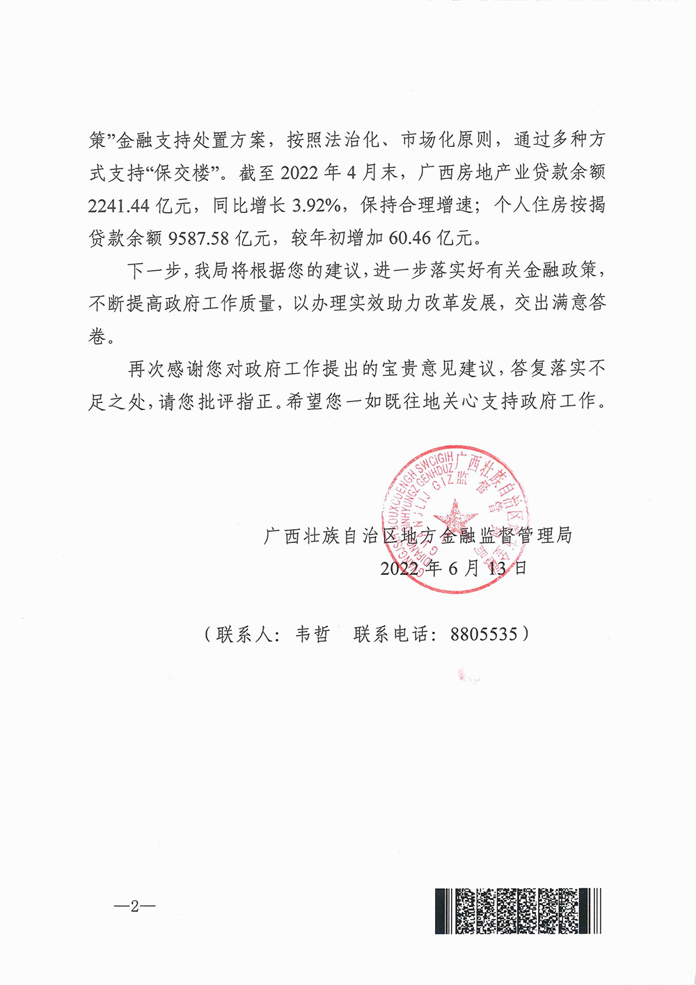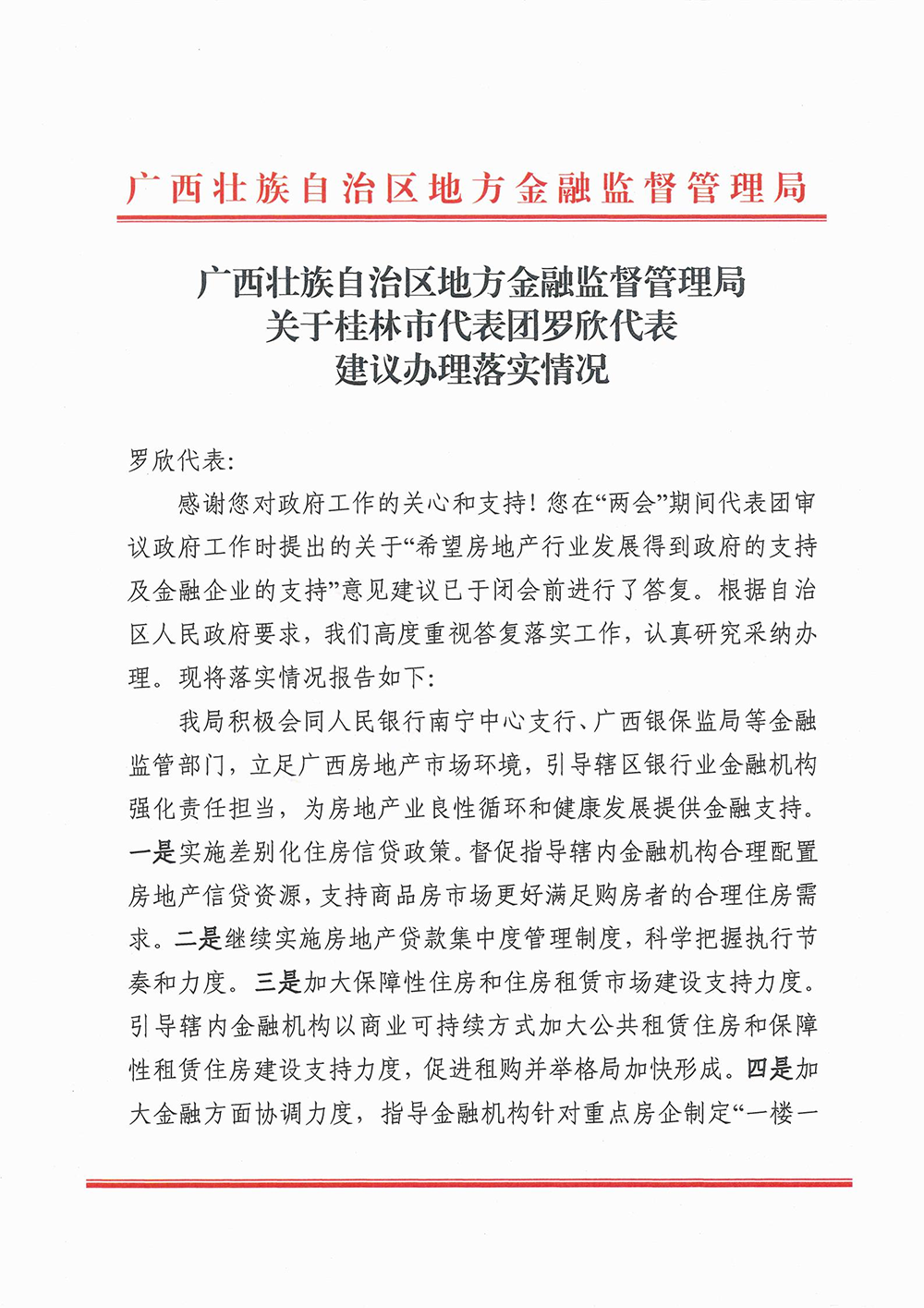 2022年廣西兩會期間,人大代表、政協(xié)委員以飽滿的政治熱情和強烈的責(zé)任擔(dān)當(dāng),認(rèn)真審議和討論各項報告,積極建言獻(xiàn)策。自治區(qū)人大代表、桂林市政協(xié)常委、興進(jìn)集團(tuán)董事長羅欣先生提出關(guān)于“希望房地產(chǎn)行業(yè)發(fā)展得到政府的支持及金融企業(yè)的支持”意見建議,得到廣西壯族自治區(qū)住房和城鄉(xiāng)建設(shè)廳回函。