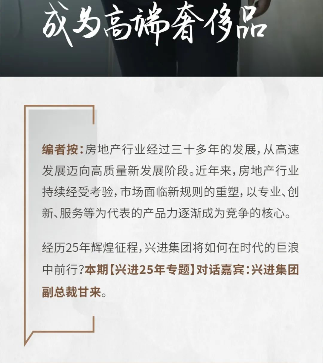 興進(jìn)25年 對(duì)話興進(jìn)集團(tuán)副總裁甘來(lái):讓中式建筑成為高端奢侈品