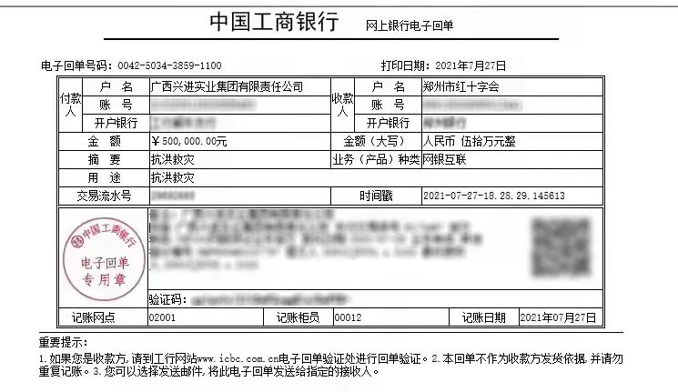 7月27日,興進(jìn)集團(tuán)通過(guò)鄭州市紅十字會(huì)向?yàn)?zāi)區(qū)捐贈(zèng)50萬(wàn)元善款,以實(shí)際行動(dòng)為受災(zāi)群眾、抗洪一線(xiàn)的救援人員提供有力支持。