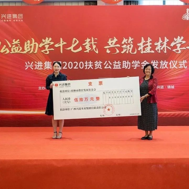 在愛(ài)心助學(xué)方面,自2013年起,連續(xù)9年堅(jiān)持投身"三元午餐·愛(ài)心工程"活動(dòng),為全州縣東山鄉(xiāng)白嶺小學(xué)捐款捐物;2019年,向桂林市教育發(fā)展基金會(huì)捐贈(zèng)100萬(wàn)元,用于支持桂林教育事業(yè)發(fā)展;2020年、2021年,向桂林中學(xué)捐贈(zèng)"興進(jìn)·桂林中學(xué)優(yōu)秀獎(jiǎng)學(xué)金",為學(xué)子的求學(xué)之路提供幫助。