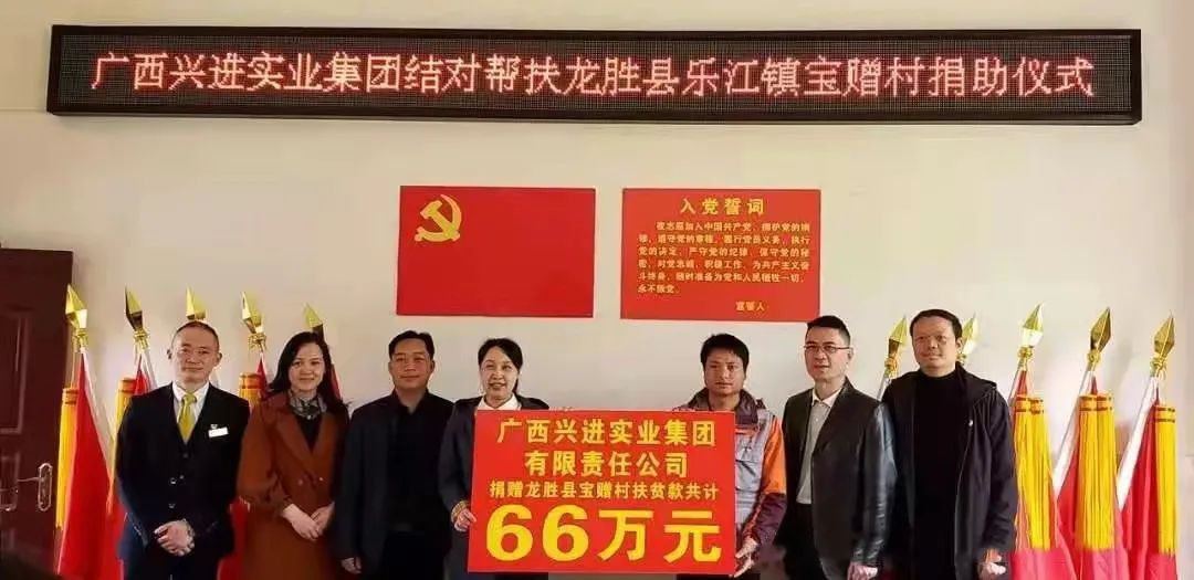 在扶貧攻堅(jiān)方面,興進(jìn)集團(tuán)響應(yīng)政府號(hào)召,全力開(kāi)展扶貧捐贈(zèng)活動(dòng):2020年,國(guó)家全面建成小康社會(huì)與打贏脫貧攻堅(jiān)戰(zhàn)的收官之年,興進(jìn)集團(tuán)先后向龍勝寶贈(zèng)村、陽(yáng)朔楊堤鄉(xiāng)、南寧雅梨鄉(xiāng)捐贈(zèng)扶貧款項(xiàng)共計(jì)73.5萬(wàn)元,以精準(zhǔn)扶貧持續(xù)發(fā)力,鞏固脫貧攻堅(jiān)成果,讓貧困鄉(xiāng)村走上致富之路。