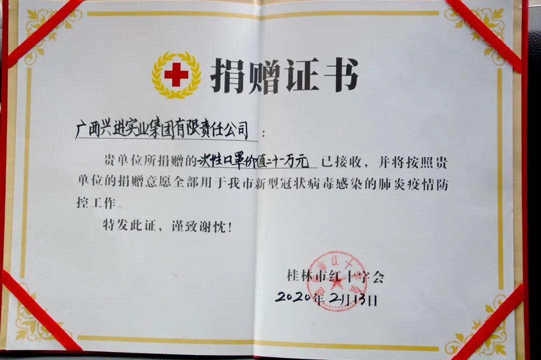 2020年,疫情肆虐的一年,興進(jìn)集團(tuán)第一時(shí)間啟動(dòng)應(yīng)急捐贈(zèng),向武漢市江夏區(qū)紅十字會(huì)、桂林市第二人民醫(yī)院、自治區(qū)南溪山醫(yī)院、桂林市紅十字會(huì)等15家抗疫一線(xiàn)單位,捐助抗疫善款及醫(yī)療物資,總金額超168萬(wàn)元,用鐵肩擔(dān)當(dāng)、愛(ài)心善舉助力疫情防控。